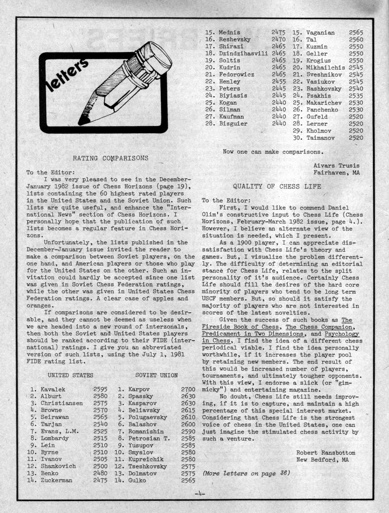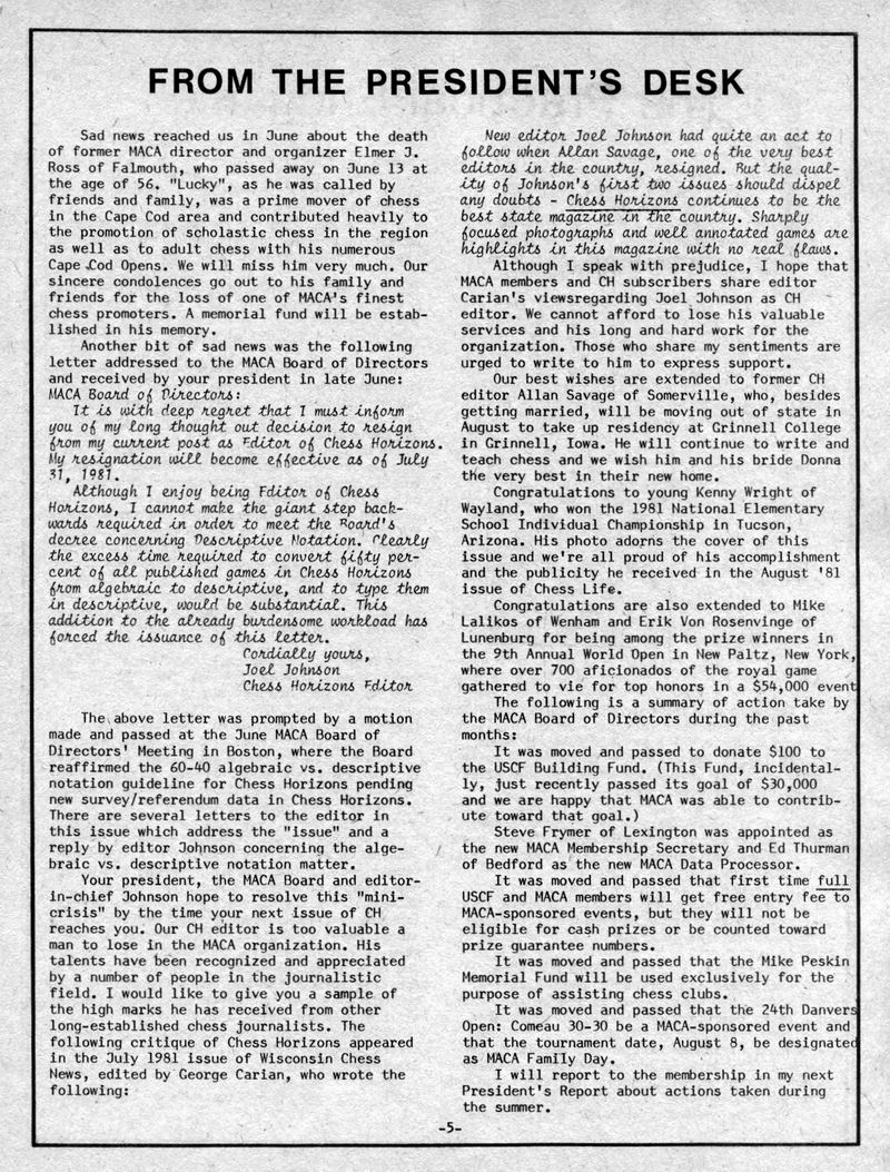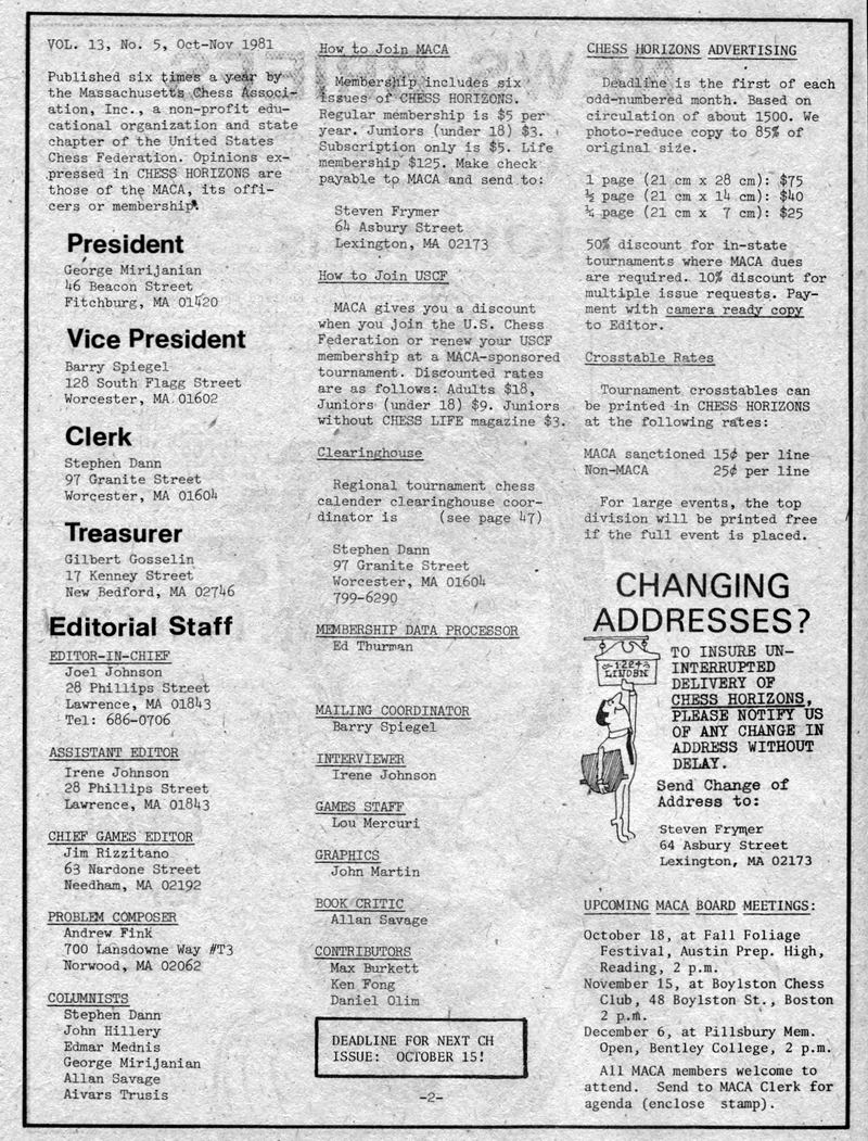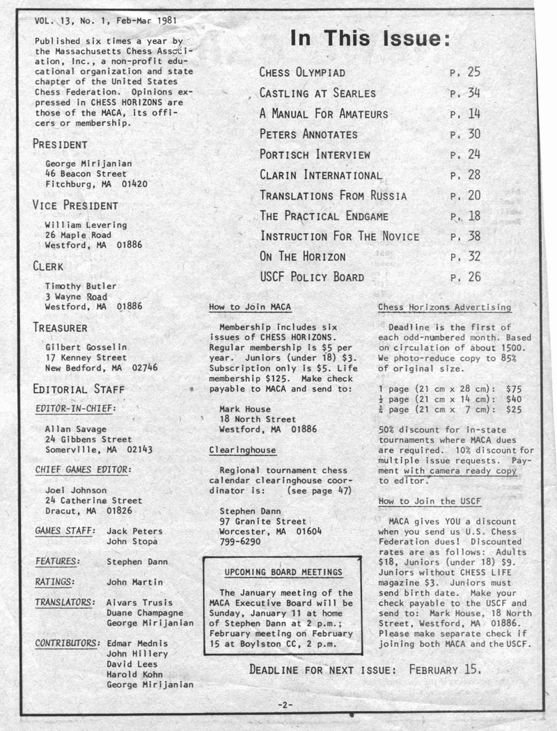 Chess Horizons Covers and selected pages