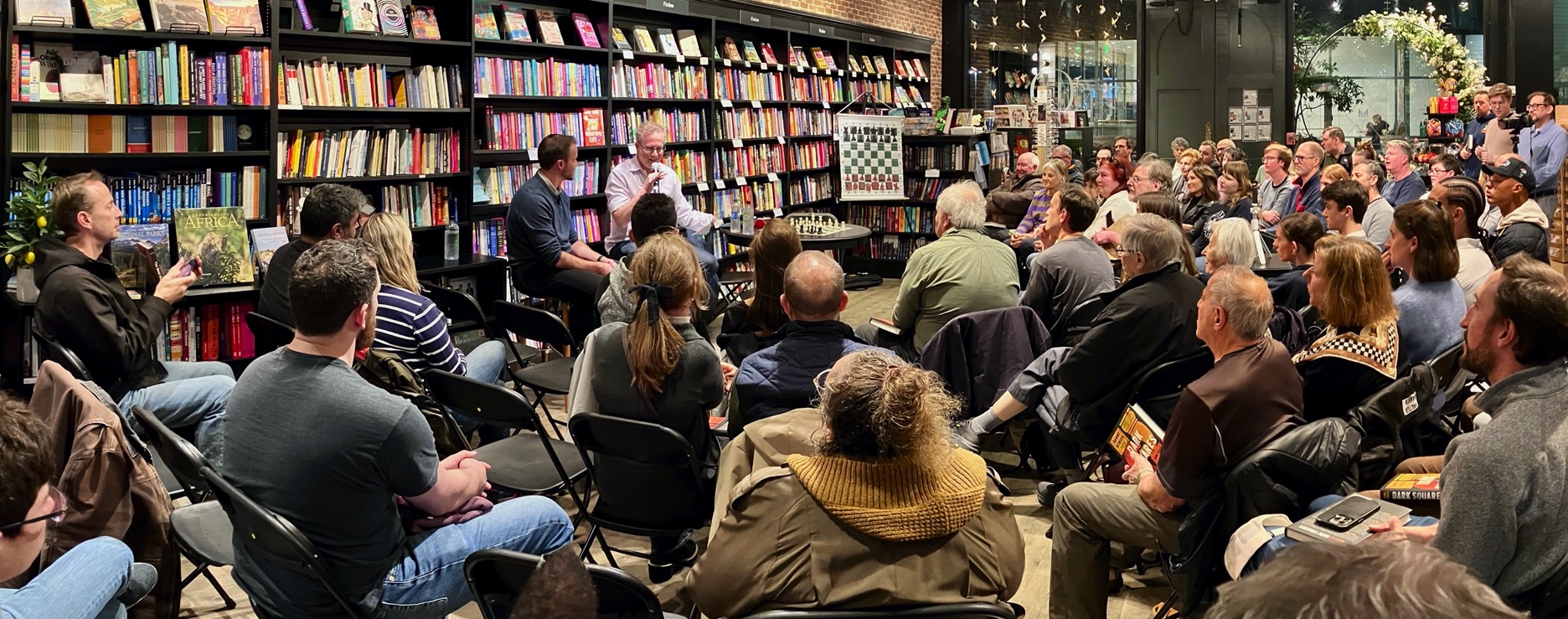 On November 5, Hummingbird Books in Chestnut Hill welcomed Chess.com co-founder Danny Rensch, for a special evening celebrating the release of his new memoir, Dark Squares, followed by a surprise exhibition of blindfold chess.